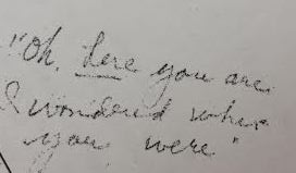 “Oh, here you are. I wondered where you were.”