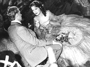 In case anyone didn’t believe me, here’s another picture of Jeanette trying to buck up and pull it together to get the duet shot on the set of Maytime. See the Kleenex in her hand?