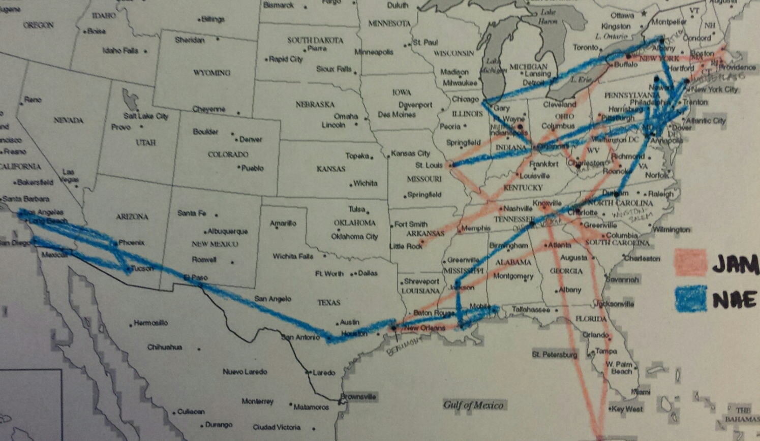 Okay, I’m about to impart a whole LOT of data, so try to stay afloat. I’ll present it in the most organized way possible, but there’s a lot of material here. I’ve spent a bunch of hours trawling through newspapers and calling libraries in various cities, trying (and sometimes succeeding) to get scans of newspaper articles from their towns about this tour. I originally only cared about January of 1941, but I ended up researching the entire tour. For each month, I printed out a calendar and penciled in information on each day for which I found data. I also made a map of their tour locations! I succeeded in nailing down every single date of every concert that either of them gave on this tour, and in many occasions, got the name of the theatre or venue where they sang. I’d like to thank Sharon and Maria for helping come up with a few dates that I was missing. Sharon also provided me with her list of tour stops against which to check my newspaper digging work–I’d transposed one date, but by and large, they were right on! 🙂
