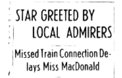 The article is badly faded and hard to read, but after detailing that she had to spend “another” night in Washington, it goes on to say that she didn’t receive the press in Roanoke, that she walked straight to the waiting car and was taken to the Hotel Roanoke (less than a mile from the train station, I’ve been there MANY times, it’s classy and gorgeous and old and wonderful and it also is less than a mile from the venue where she performed, which has been torn down and replaced with the Roanoke Civic Center).