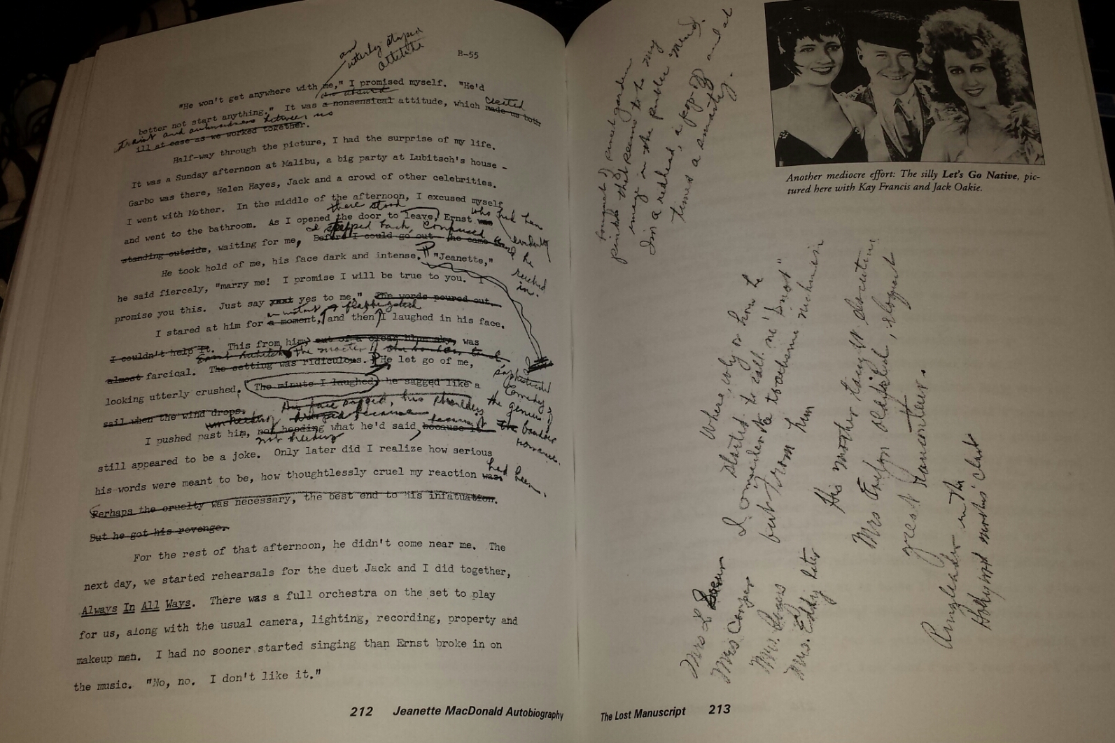 Study being the right word. Some of the things Jeanette has to tell us in this book are charming and amusing and wonderful. But the very BEST part is the handwritten notes literally all over the manuscript. She adds stuff, changes stuff, crosses things out, makes notes in margins, does [incorrect] math in margins…..it is a total field day for the person interested in studying this fascinating human being.