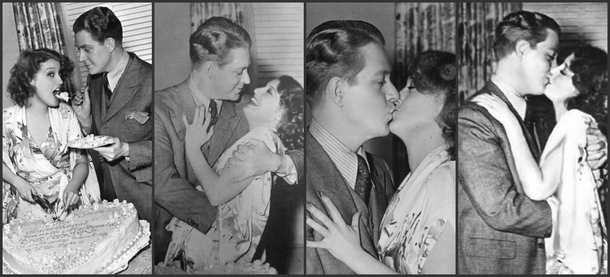 And, of course, here are some of my favorite birthday shots of Jeanette with her most favorite co-star, taken June 18, 1938. She’s pregnant with his baby, their happiness is palpable and so what if there’s a camera around? The caption for the “peck” picture (which is clearly a different kiss than the last shot, their noses are on opposite sides and their hands are different) had to do with Nelson “congratulating” her on her birthday and her first wedding anniversary.