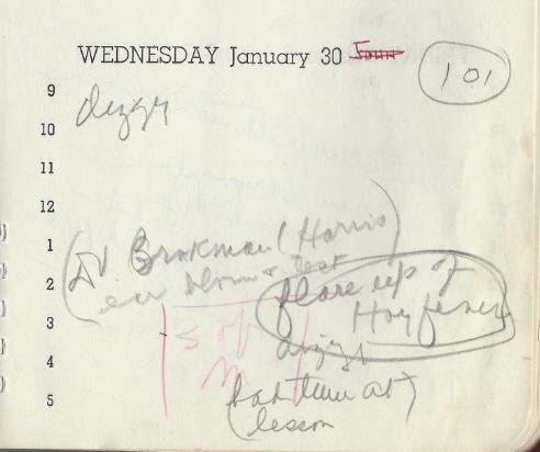 She washed her hair, obviously wasn’t feeling well because she canceled Harold, then was “terribly dizzy after dinner” — oh, and Gene showed up in time to eat, it seems.