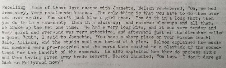 Can we all just take a second to appreciate the fact that in the year 1953, Nelson is alluding to some serious effing tonsil hockey with Miss MacDonald? I mean, I realize that he’s being funny, but, ya know, one’s wisdom teeth are at the BACK of one’s mouth. I think it’s nice of him to inspect her teeth for her. The very spirit of volunteerism, that Eddy. 😉