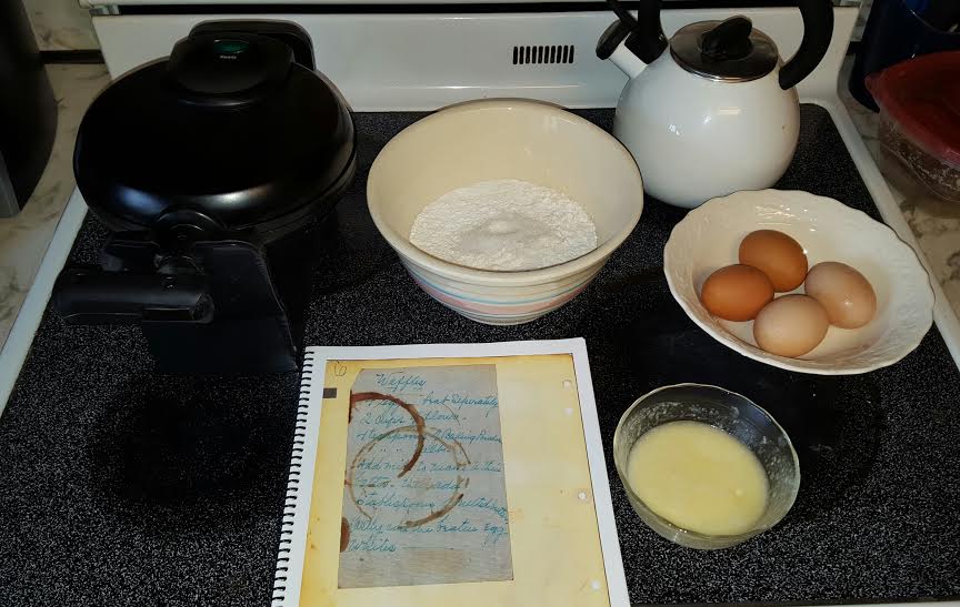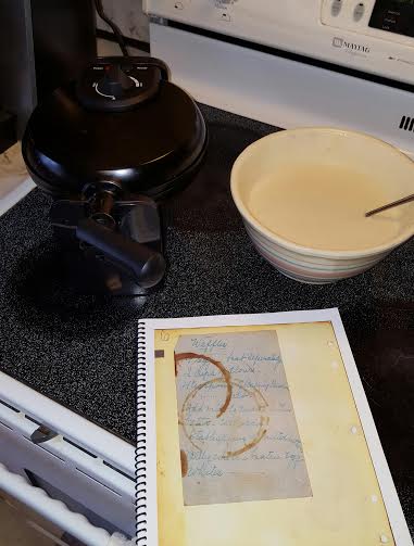 So this morning, I figured it was time to try the waffles. Here is her recipe, in her own handwriting. ❤