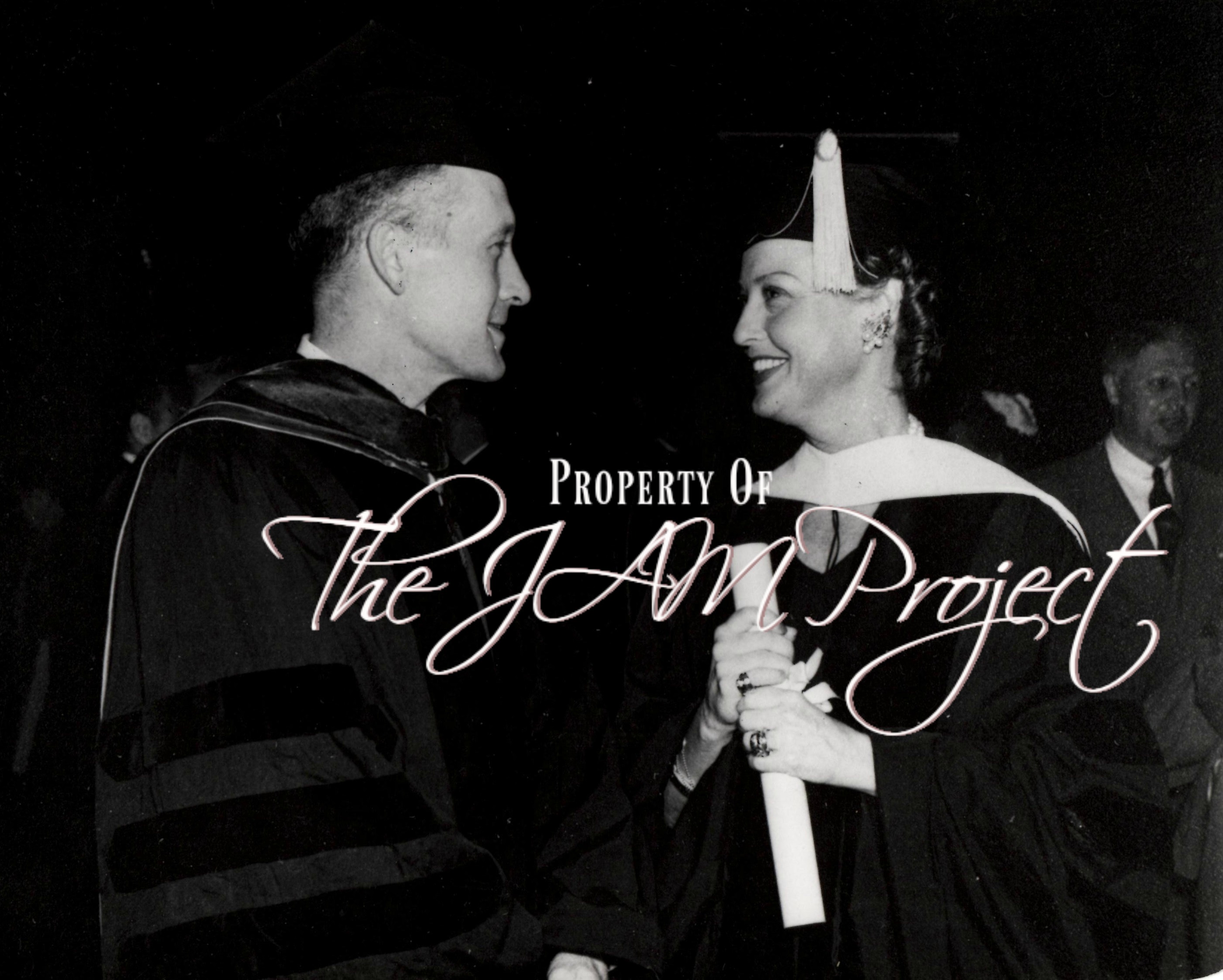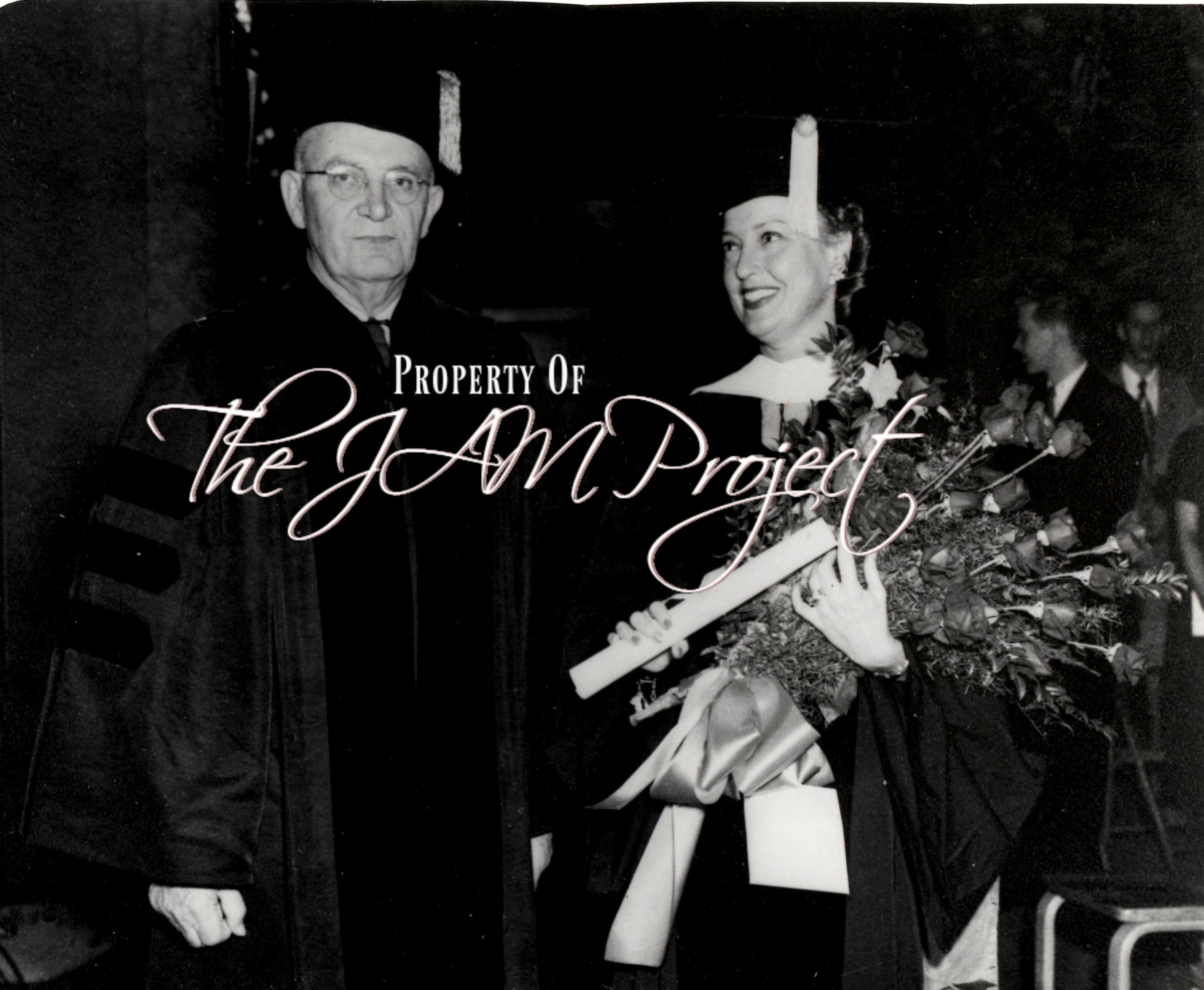 And then, finally, is my favorite picture from the entire thing. There has never been a more totally adorable human being than this one. She is just as pleased as she can possibly be—she probably never thought she’d wear a cap and gown, and while she got to do a lot of other things most of us can only dream about, one can also see how this sort of thing would thrill her. Part of her fully embraced where she came from, but I believe, based on what I have read, that she was, somewhere on the inside, very sensitive about the things she felt she lacked in terms of background. What I know about Jeanette is that she took it deeply to heart when she was given tokens of her worth. It’s a dichotomy; the woman who knew damned well what MGM should be paying her also needed -deeply- affirmations like this one. Words of affirmation is her love language. Thank Anna MacDonald for that. Sigh. That’s a whole other blog. At any rate, I can see her really loving this occasion and that’s why I love this photo: